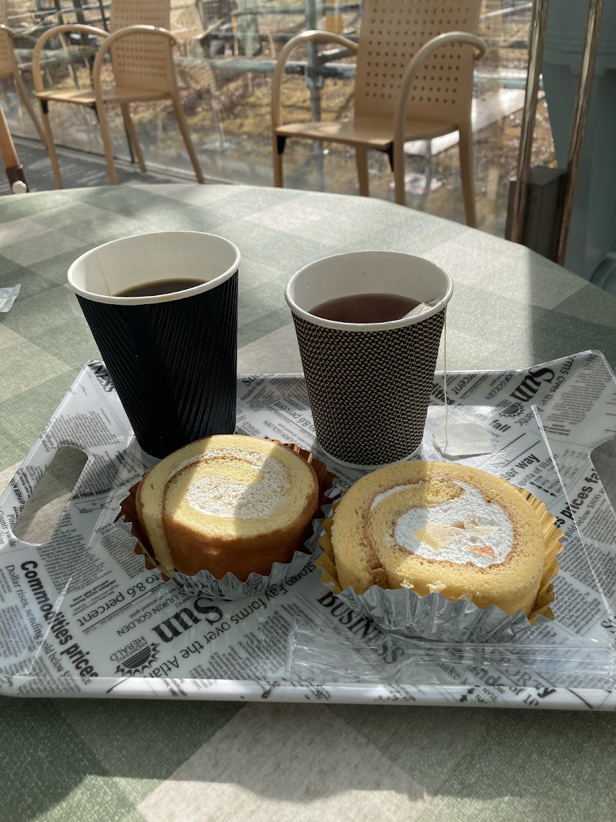 If you're in the mood for a drink, the カフェラテ (Café Latte) is expertly crafted, complementing your dessert perfectly. The affordability of their set menu—featuring both the roll cake and a drink for just 400 yen—adds to this delightful experience without breaking the bank.